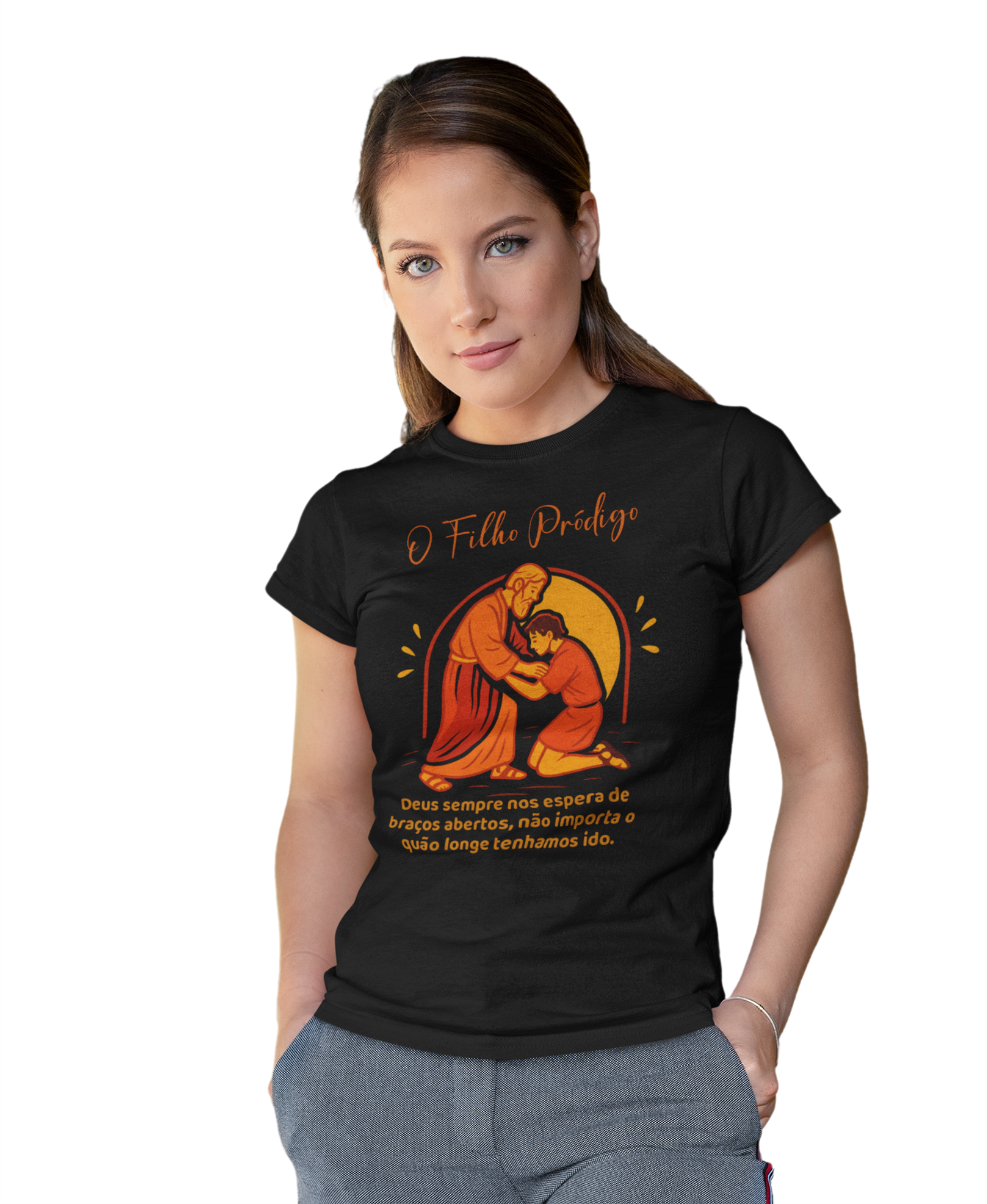 A camiseta “O Filho Pródigo” carrega uma das mensagens mais poderosas da Bíblia: não importa o quão longe você vá, Deus sempre estará de braços abertos para te receber.